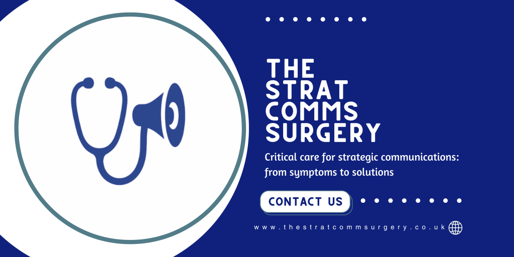 I’m the founder of The Strat Comms Surgery, a consultancy dedicated to empowering start ups and charities through bespoke strategic communications workshops.